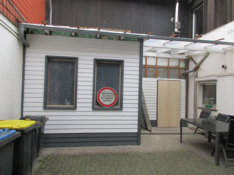 So sah das Ganze von Außen aus. Dach und Fassade mussten