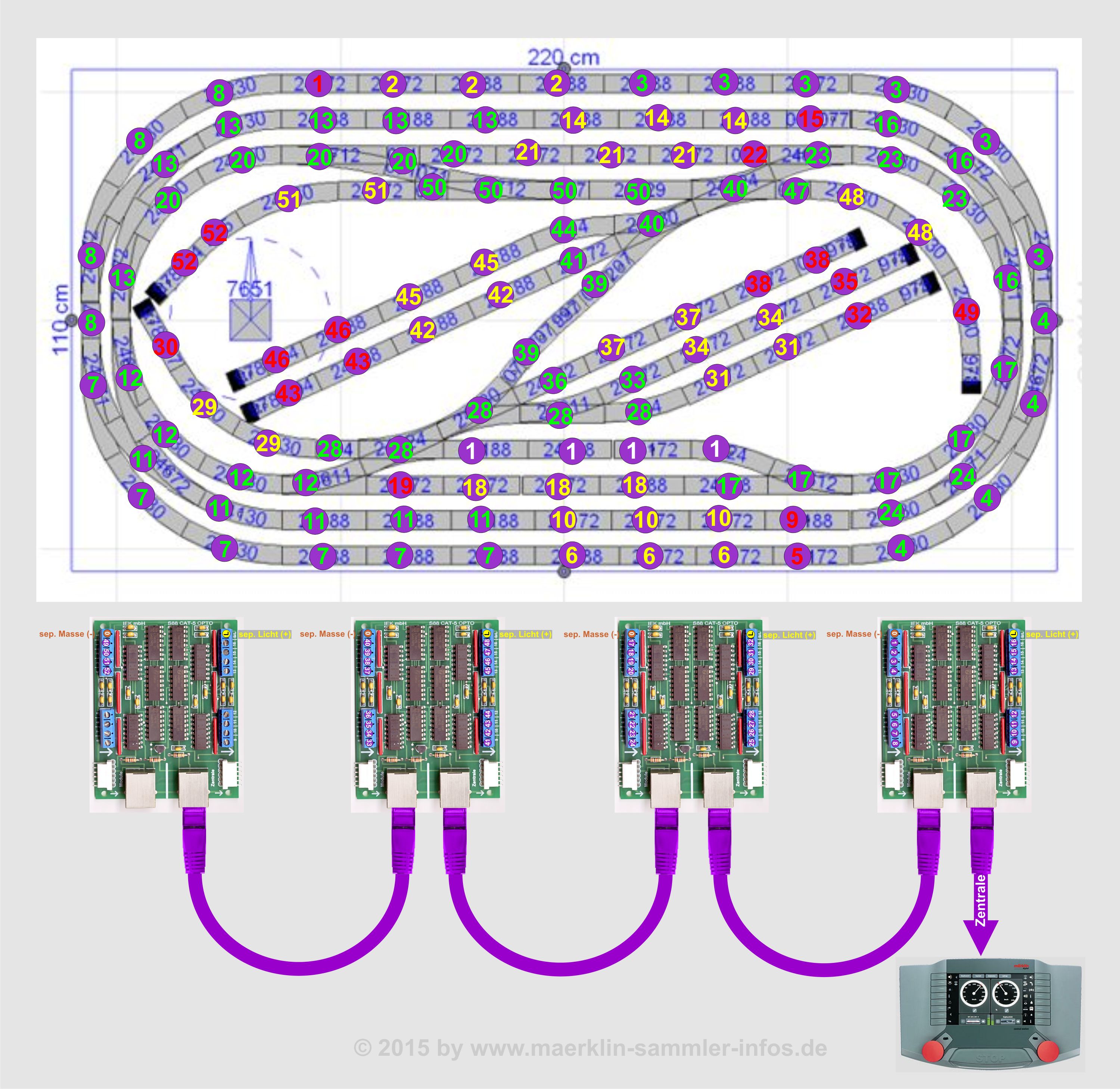 nicht, das jedes einzelne Gleis an einen Rückmeldekontakt hängt,