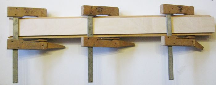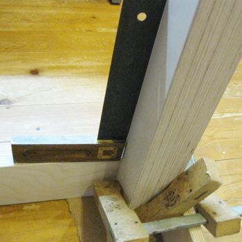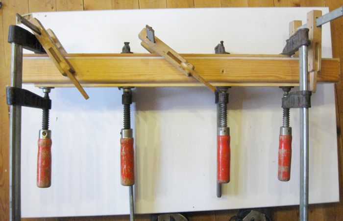 Längszarge mit Klemmen (Schraubzwingen) fixiert. Die Leimangabe