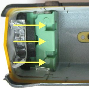 orangen Kreis gelöst werden und das Halteblech entfernt werden.