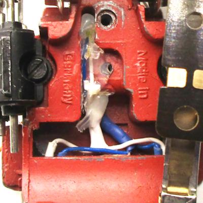 Motorschild, so wie auf der Seite des Gehäuses abisolieren. Das