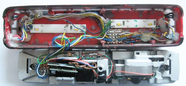Als erstes werden alle Kabelverbindungen gelöst und entfernt. Die Lokomotive wird komplett neu