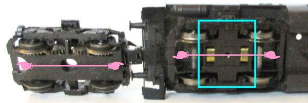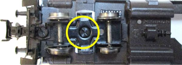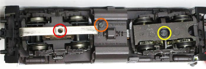 Das Antriebsdrehgestell ist es die Schraube im gelben Kreis. Die