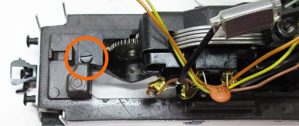 Der Schleifer der durch entfernen der Schaube im roten Kreis