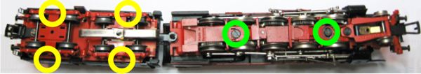 direkt angelötete Kabel an den Drehgestellen des Tenders, oder