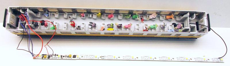 Nun noch die restlichen Litzen anlöten, bevor die Leiste an die Decke des Wagendaches geklebt