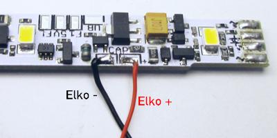 Elko an die vorbereiteten Litzen der Leiste anlöten.