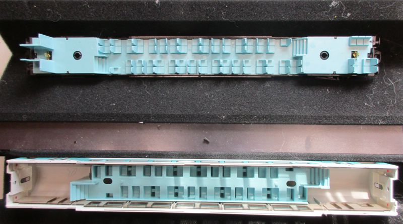 vorsichtig Fahrgestell und Wagenkasten auseinander ziehen.